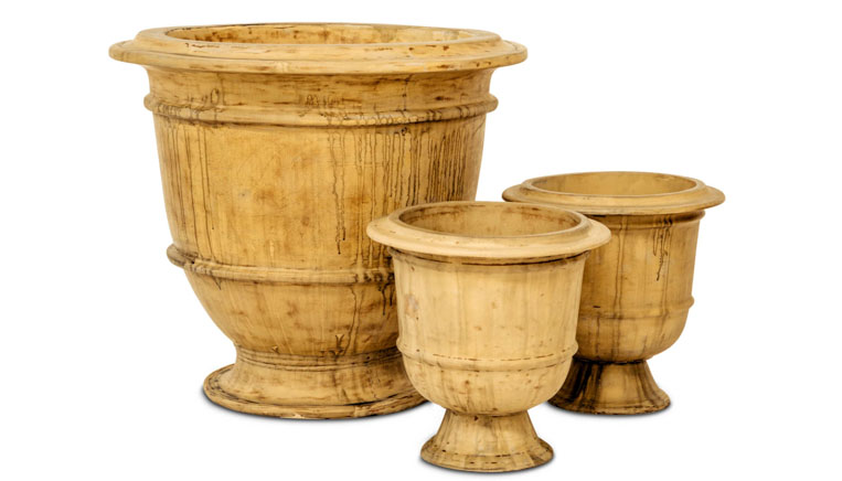 Since then, garden architects have been decorating the gardens of European courtyards and palaces with more or less perfect monumental reproductions made from various materials such as marble, stone, bronze or cast iron. In Versailles, for example, there are various marble replicas carved by Jean Cornu. This model in particular is still used today as a template for the production of vases made of porcelain, terracotta or cast metal.