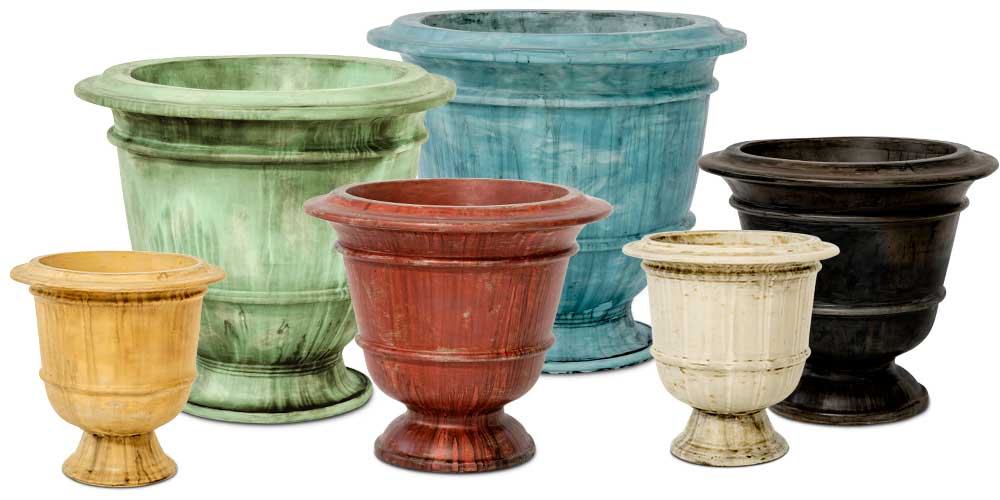 classic vintage vase | garden decor planter | hand-made hand-patinated pigmented fibre resin | frost proof